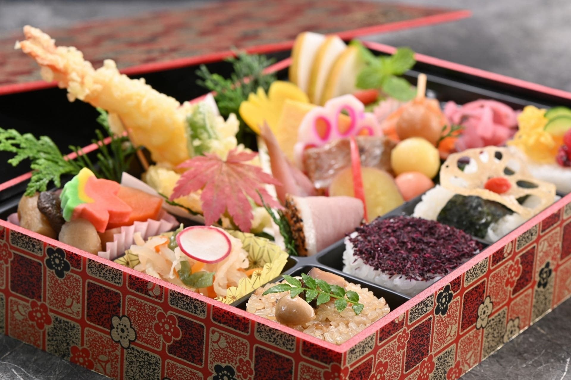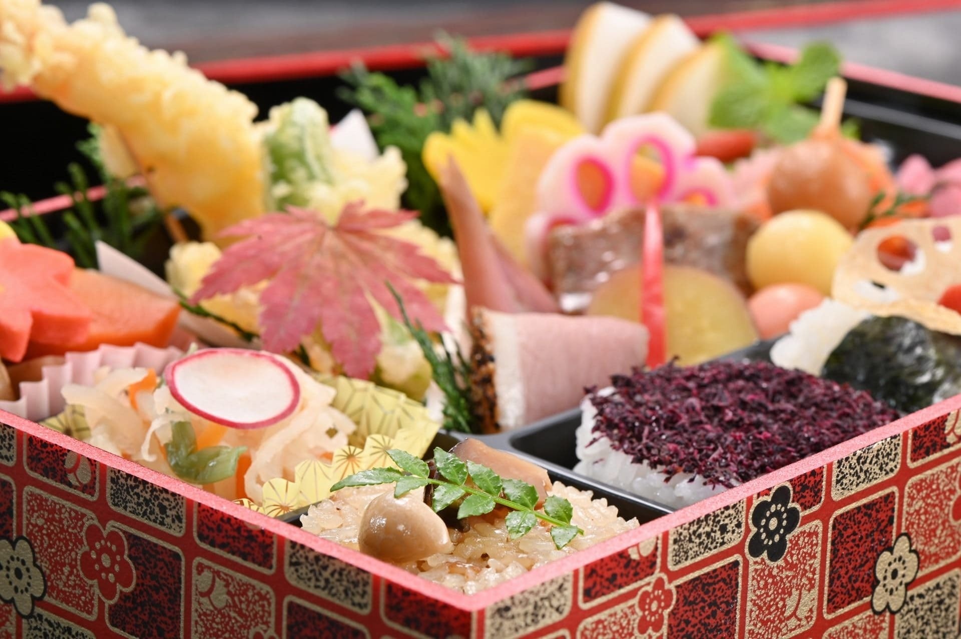 お子様や女性に人気で、会社の会議等でもよく利用されるお弁当です。低価格ながら、八寸、和え物、天麩羅、焚き合せ、御飯、フルーツが入った盛りだくさんの内容。日本の仕出し料理の雰囲気を味わうことができます。